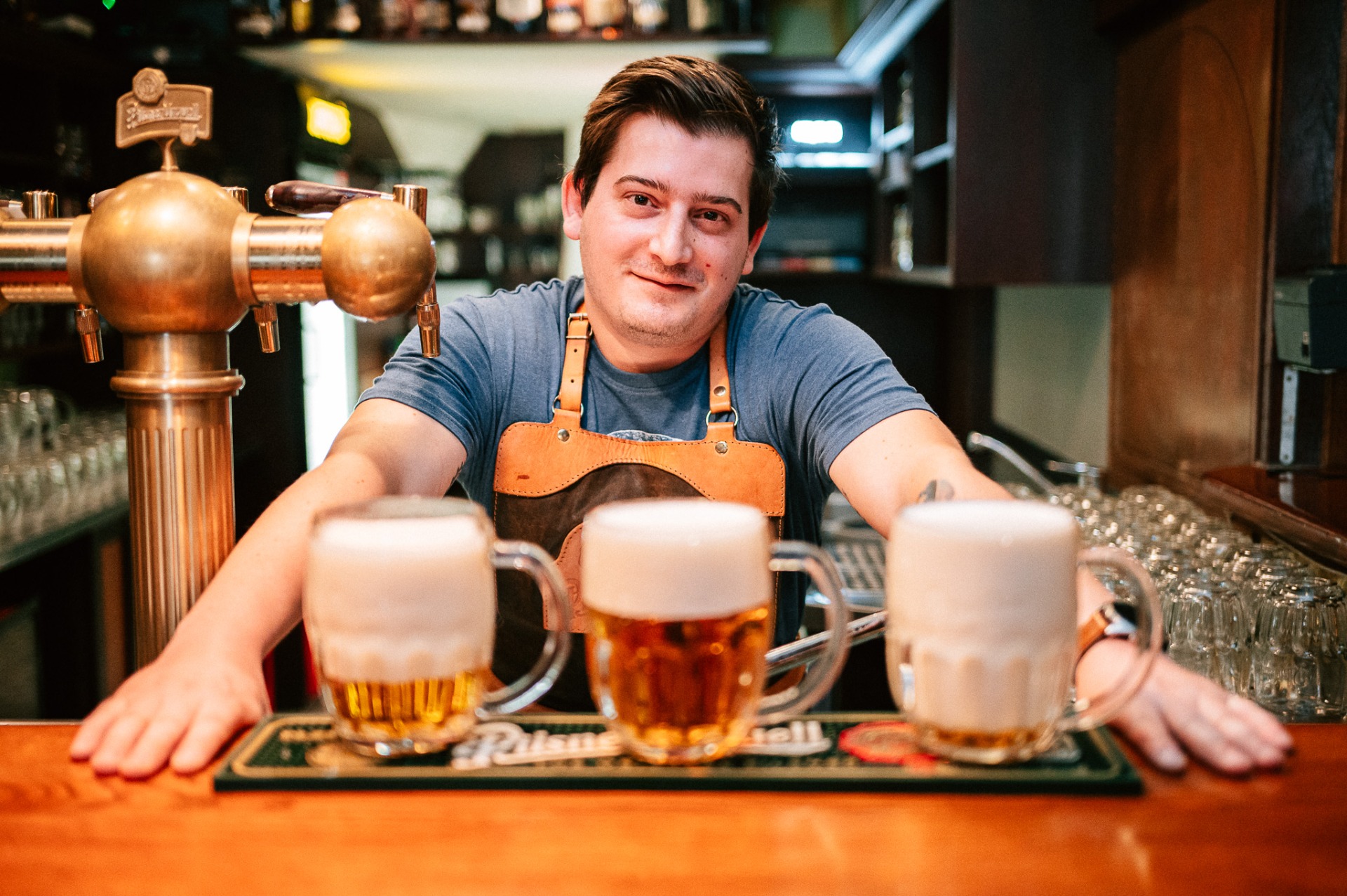 Csehországban végzett csapolómesterünk, szivesen segít a sör választásában, mesél a cseh csapolásokról, amivel egyediek vagyunk. A minőséget is garántálj, és akár edukál és kóstoltat is.